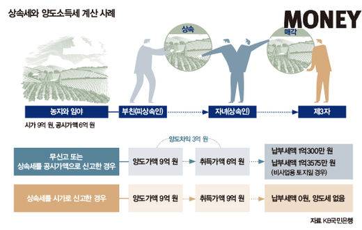다음의 사례를 보면 이해하기 쉽다. 자녀가 부친으로부터 받은 시세 9억 원의 농지를 공시가액 6억 원으로 신고하고 상속받아 5년이 경과한 뒤 9억 원에 매각하는 경우를 가정해보자. 일단, 10억 원 이내의 상속재산이라면 세금은 잊어도 된다. 정부가 중산층의 상속세에 대한 불안감을 덜어주고 상속인의 생활 안정을 위해 상속공제제도를 채택하고 있기 때문이다.