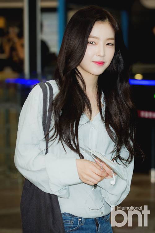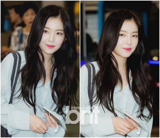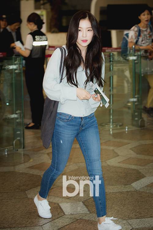 하늘색 셔츠에 스키니진으로 이지룩 공항패션 완성한 레드벨벳 아이린.