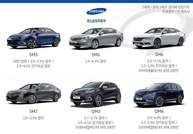 르노삼성은 SM6와 QM6에 최대 300만원, QM3에는 최대 200만원의 할인 혜택을 내걸었다.