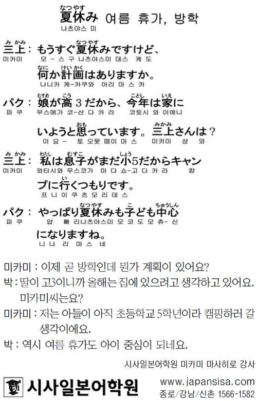 [시사일본어학원의 초단기 일본어 회화] 여름 휴가, 방학