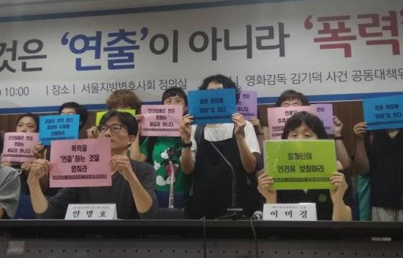 | 지난 8일 영화·여성 단체들로 구성된 '영화감독 김기덕 사건 공동대책위원회'가 서울지방변호사회에서 기자회견을 열고 김 감독에 대한 철저한 수사를 요구하고 있다. |