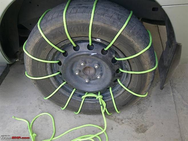 케이블 타이형의 체인은 유사시 간단하게 설치하여 사용할 수 있지만 사용해본 최악의 체인이다. 눈길을 오르기 위해 타이어를 몇 번 굴리자 모두 끊어지면서 흩어졌기 때문이다. (물론 모든 체인이 그렇지는 않겠지만 ...)