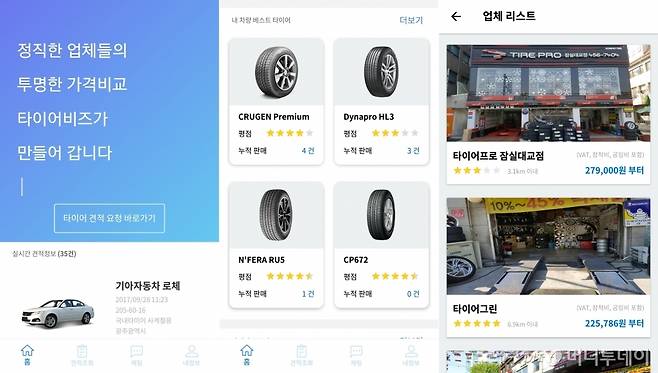 견적서에는 타이어 가격은 물론 가게까지의 거리, 가게 사진 등을 함께 보여준다. 이용자는 견적서상 업체의 타이어 가격과 서비스, 후기 등을 비교할 수 있다. 방문날짜를 선택하고 예약하는 것까지 앱 내 채팅을 통해 가능하다. 지금까지 타이어비즈를 통해 견적을 낸 고객은 1만명, 교체된 타이어 수는 8000본이다.