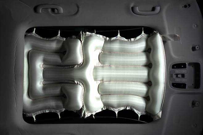 또한 사고시 선루프 스크린이 열려 있을 때와 닫혀 있을 때 각 상황에 맞게 안전하게 에어백이 전개돼야 한다. 선루프가 닫혀 있는 상황에서 차량이 전복되면 에어백은 선루프 유리와 차양막 사이를 가로지르며 전개된다.