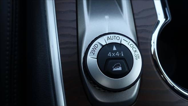 2WD와 오토, 4WD 락 모드를 갖춘 인텔리전트 사륜구동시스템을 적용했다. 풀타임 4WD는 아닌 셈이어서 굳이 따지자면 파트타임 4WD 방식이다. 오토모드에서 주행상황을 판단해 사륜구동을 작동하는 방식이다. 락 모드는 전후륜 구동력을 50:50으로 고정해 오프로드 주행을 돕는다. 오토모드에서 사륜구동 기능은 잘 작동하지 않는다. 초반 가속에서 잠깐 사륜주행 상태가 될 뿐, 고속주행에서도 사륜구동 기능이 활성화되진 않는다.
