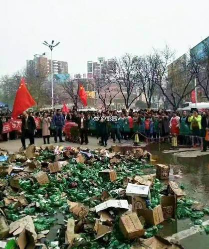 | 롯데에 대한 보복으로 소주 등을 쌓아놓고 부수기. |