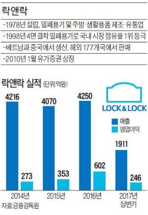 투자은행(IB)업계 관계자는 “중국발 악재로 락앤락 주가가 1만2000원 수준까지 떨어졌지만 중국과 베트남 주방용품 시장 성장세가 여전히 높다고 판단해 어피너티가 인수를 결정한 것”이라고 분석했다.
