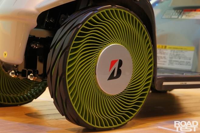 다음 단계의 타이어는 공기 없는 ‘에어리스 타이어(Airless Tyre)’로 전망된다. 공기를 넣는 대신 고무나 우레탄을 이용해 만든 내부 구조로 버티는 타이어다. 미쉐린, 브리지스톤, 한국타이어, 스미토모(던롭) 등 다양한 타이어 제조사가 시제품을 개발했다. 현재 특수 차종에 적용하고 있지만 아직 양산차에 적용할 단계는 아니다.