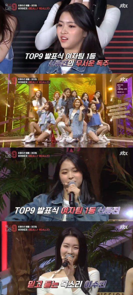 멤버들은 이수민의 시원한 고음과 신류진의 묵직한 랩, 신나는 댄스가 어우러진 무대를 펼쳤다. 원곡자 강승윤은 “냉정하게 보려고 했다. 재미있게 잘 소화해주셔서 감사하다”는 심사평을 했고 양현석은 “신류진 양이 랩을 했다는 것이 재미있는 반전이었다. 이수민과 허찬미가 있어 모자란 부분을 채워줬다고 생각한다”고 호평했다. 신류진이 994점으로 압도적인 1등을 차지했다./mk3244@osen.co.kr