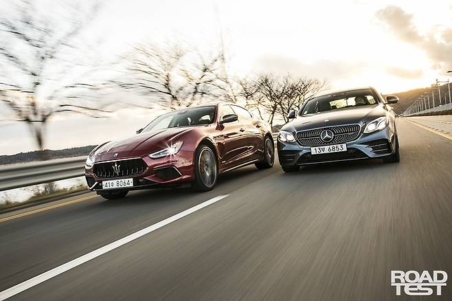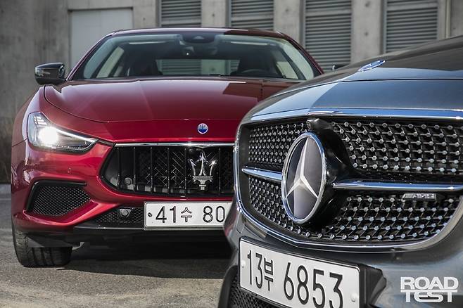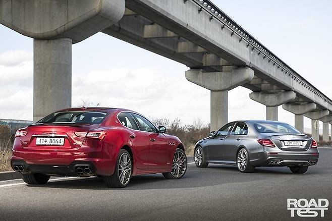 삼지창과 세 꼭지 별. 혈통 있는 두 가문의 ‘화끈이’들이 맞붙었다. 마세라티 기블리 S Q4와 메르세데스-AMG E 43 4매틱이다. 두 모델은 닮은 구석이 많다. 5m에 달하는 차체 길이와 4개의 도어, 400마력 대 V6 3.0L 가솔린 트윈터보 심장, 매콤한 안팎 디자인 등이 그렇다. <로드테스트>가 마련한 링 위에서 두 맞수가 ‘으르렁’대며 한 판 붙었다.