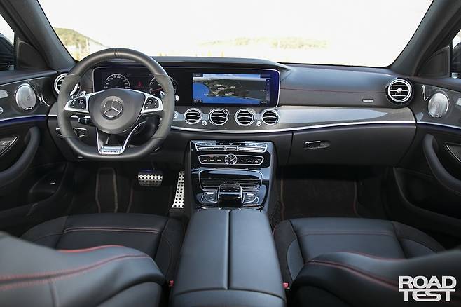 AMG E 43 4매틱은 겉모습으로 풍기는 자극이 적다. 앞뒤 범퍼와 그릴 속 크롬 핀 장식, 대구경 브레이크, CFRP 사이드미러를 빼면 AMG 라인 곁들인 일반 E-클래스와 구분이 쉽지 않다. 물론, 400마력 대 흉흉한 성능을 의뭉스럽게 감추고픈 벤츠의 의도일 수도 있다. 화끈한 재미를 원하되 시선을 끌고 싶지 않은 소비자의 취향을 저격했다.