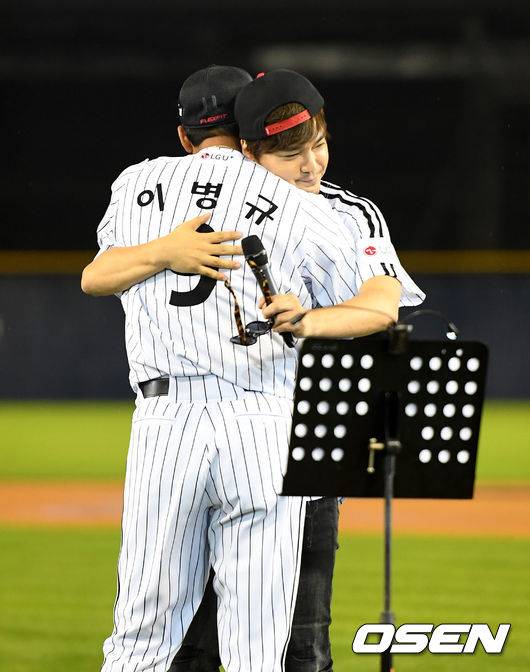 [사진]이병규, 응원가 부른 임재욱과 뜨겁게