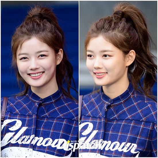 김유정은 이날 높게 묶은 포니테일 헤어로 10대의 상큼발랄한 분위기를 연출했다.