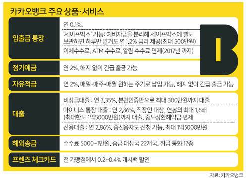 카카오뱅크는 “이게 과연 은행 앱이야?”라는 말이 나올 정도로 이용 편의성과 새로운 서비스로 깜짝 놀라게 해주겠다며 자신감을 내비치고 있다. 카카오뱅크는 오직 모바일로만 승부한다. 스마트폰 앱만으로 모든 거래가 비대면으로 이뤄지도록 한다는 구상이다. 케이뱅크가 모바일과 인터넷으로 운영되는 것과 다르다. 두 인터넷전문은행의 경쟁이 어떻게 펼쳐질지 관심거리다. 지난 4월 문을 연 케이뱅크는 100일 만에 여·수신 1조2000억원, 가입자 40만명을 넘기며 성장 중이다.