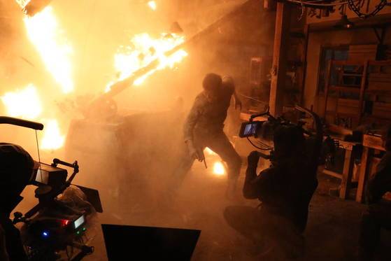 이모개 촬영감독 "화면으로 봤을 때는 그 열기가 제대로 안 느껴지는데, 정말 뜨겁고 위험했다. 폭격으로 화재 장면을 찍을 때는, 열기에 자칫 카메라를 놓칠까 싶어 소방 장비를 착용하고 촬영에 임했다. 그 안에서 연기한 배우 입장에선 더 어려움이 컸을 거다."