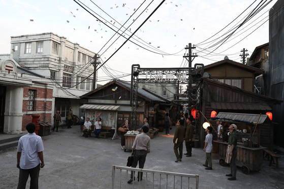 이후경 미술감독"일본의 근대 시설물을 디테일하고 자연스럽게 표현하는 게 주목적이었다. 실제 군함도는 섬 안에 부지가 부족해 길들이 다닥다닥 붙어있는데, 그 느낌을 가장 잘 살릴 수 있는 공간이기도 했다. 번화가라 주요 시설물이 모두 모여 있어야 해서 우체국·경비대·술집·약국, 그리고 실제 존재했던 ‘쇼와관’이라는 극장을 만들었다. 그리고 번화가 안쪽에 위치한 유곽은 당시 조선 여인들의 생활상을 염두해 굉장히 낙후되고 열악한 공간으로 보이도록 제작했다."