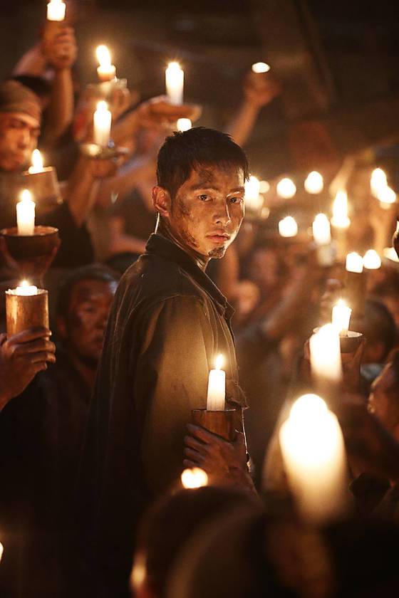 이모개 촬영감독"콘티가 완성된 건 2016년 3월이었다. 원래는 말년(이정현)의 대사로 장면을 전환하려다가 류 감독의 아이디어로 동선을 바꿨다. 카메라가 뒤로 이동하면서 조선인들이 일제히 촛불을 드는 것을 바라보면, 마지막 순간 박무영(송중기)이 뒤를 돌아본다는 설정이었는데, 정말 기막힌 아이디어였다."