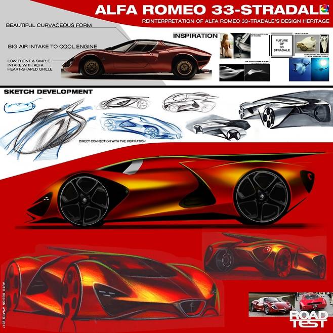 최우수상은 미국 CCS(College for Creative Studies, 이하 CCS) 운송디자인학과 학생 현대영 씨가 최우수상을 차지했다. 1950-60년대를 주름 잡은 미국의 폰티악(Pontiac) 스포츠카에서 힌트를 얻고, 미래형 2인승 로드스터를 제안했다. 가느다랗게 실눈 뜬 헤드램프와 탄소섬유강화플라스틱(CFRP) 장식이 눈에 띈다.