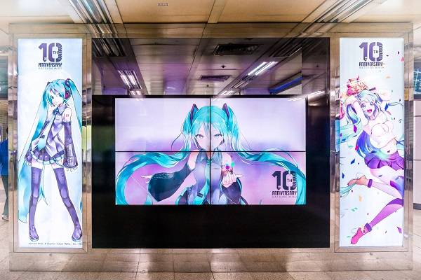 | ▲ 8월 19일 삼성역의 광고 패널에 미쿠 10주년 기념 광고가 나오고 있다. |