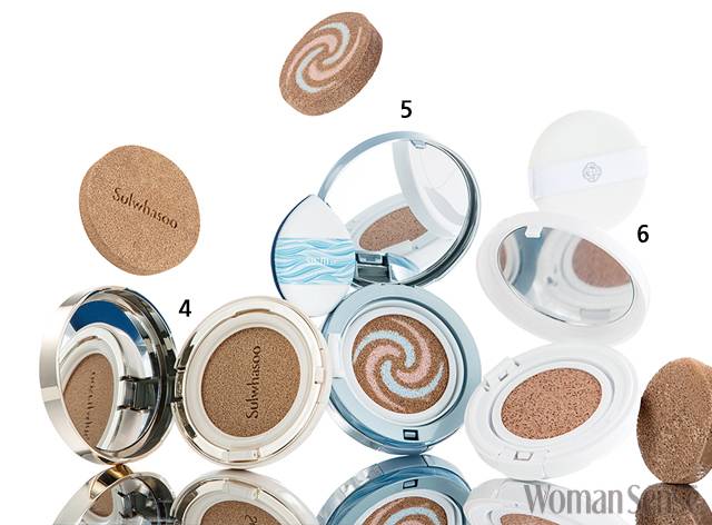 여름 메이크업의 포인트는 깨끗하고 가벼운 피부 표현이다. 강렬한 립 포인트나 아이 포인트를 시도하려고 해도 피부가 깨끗하지 않으면 포인트의 기능을 잃을 뿐 아니라 지저분하고 다크닝 현상이 일어나기도 쉽다. 가볍고 화사하게 여름 피부를 표현하는 비법으로 쿠션 팩트만 한 것이 없지만 쿨링 효과를 더해 피부 열기를 낮추고, 모공을 수축하는 효과도 있어야 하고, 촉촉한 수분감과 자외선 차단 효과, 휴대성까지 좋아야 하니 어지간히 깐깐하게 고르지 않을 수 없다. 취향이 다른 <우먼센스> 뷰티 에디터와 뷰티 인플루언서 에디터가 ‘여름 쿠션’을 테스트했다. 쿠션 팩트의 디자인과 발림성, 커버력을 관찰하고 30분 후 지속력과 구매 의향을 평가했다. 숨37°, 에스티로더, 시세이도, A.H.C, 블리블리, 설화수 등 올여름을 겨냥해 출시된 쿠션을 살펴봤다.