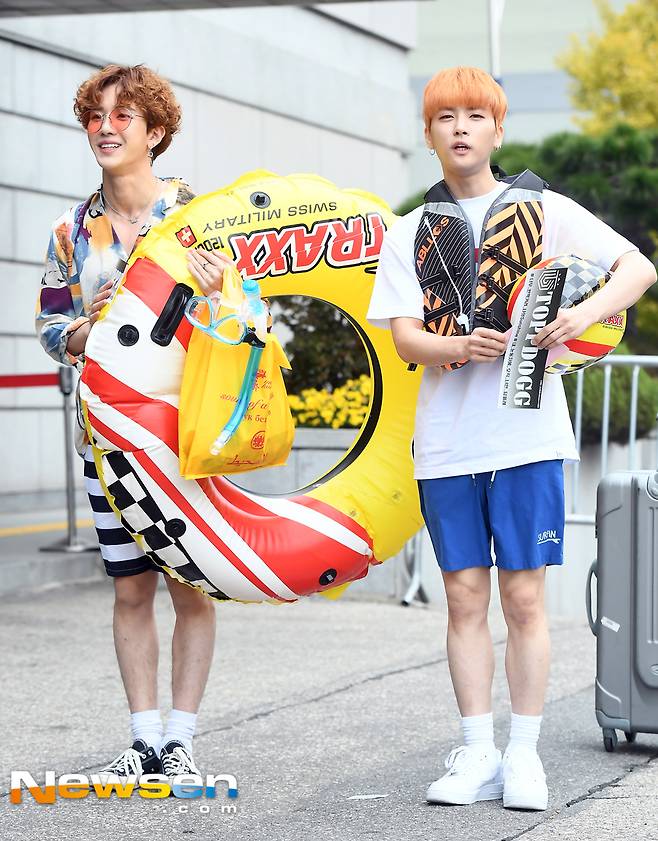 [포토엔HD] 탑독 비주-호준 '초겨울 날씨에 한여름 의상 출근길 실화냐?'(더 유닛)
