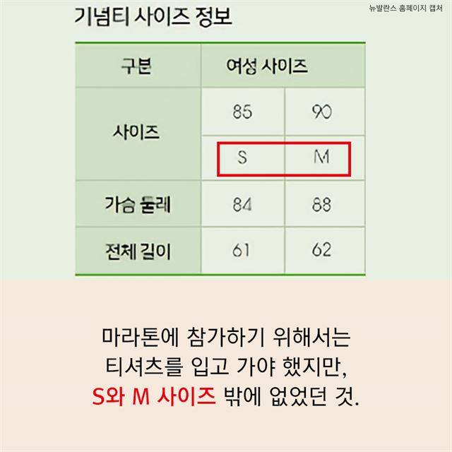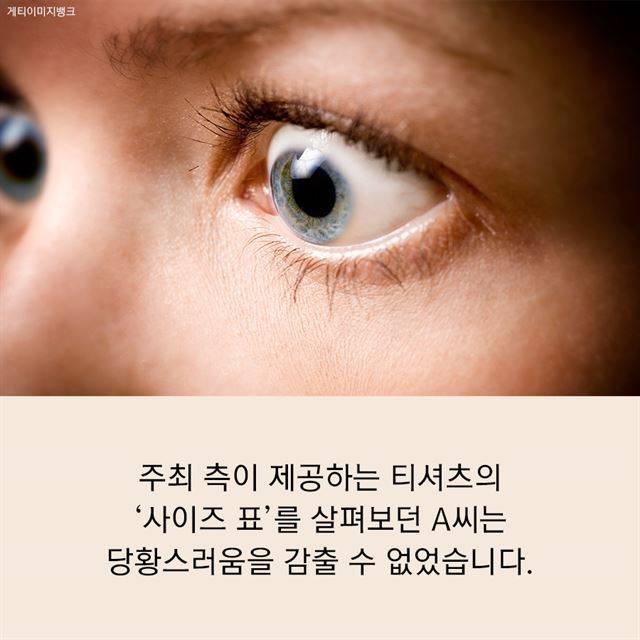 주최 측이 제공하는 티셔츠의 '사이즈 표'를 살펴보던 A씨는 당황스러움을 감출 수 없었습니다.