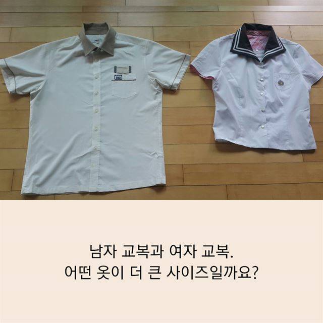 한눈에 보기에도 남학생 교복이 더 큰 사이즈일 것 같지만,