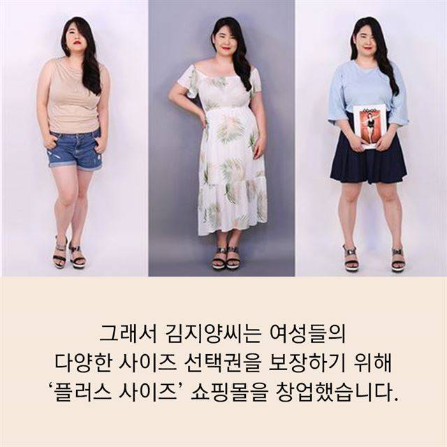 그래서 김지양씨는 여성들의 다양한 사이즈 선택권을 보장하기 위해 '플러스 사이즈' 쇼핑몰을 창업했습니다.
