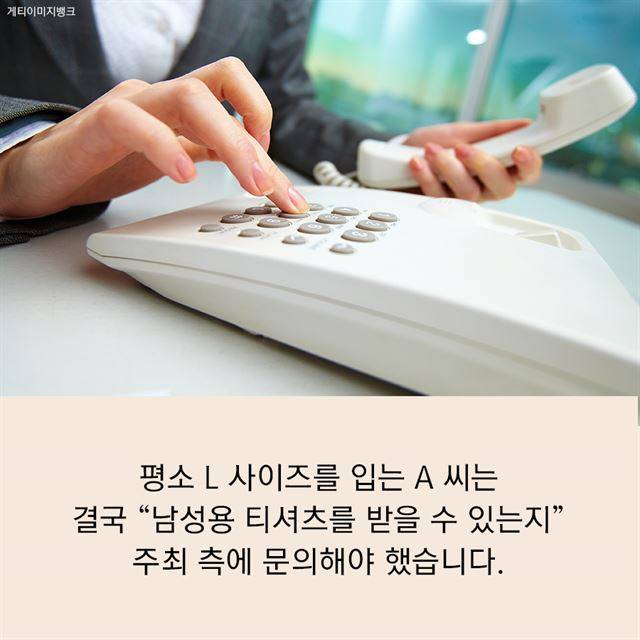 평소 L 사이즈를 입는 A 씨는, 결국 "남성용 티셔츠를 받을 수 있는지" 주최 측에 문의해야 했습니다.
