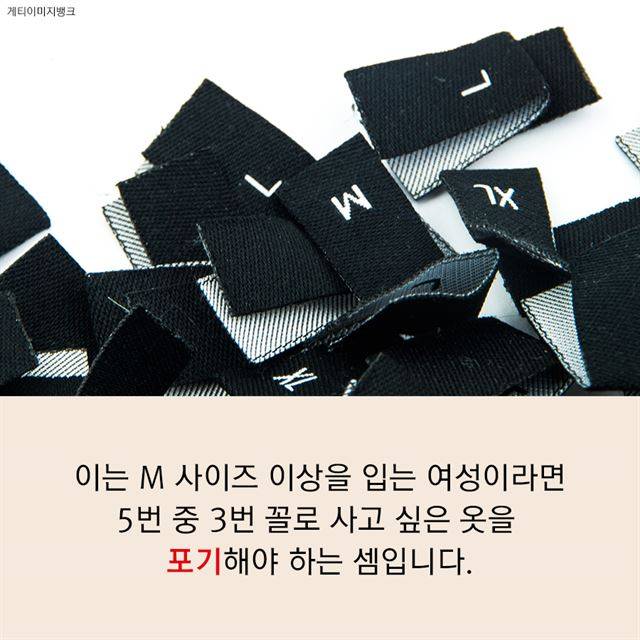 이는 M 사이즈 이상을 입는 여성이라면 5번 중 3번 꼴로 사고 싶은 옷을 포기해야 하는 셈입니다.