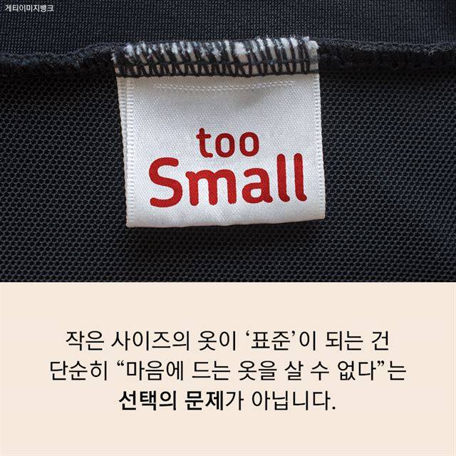 작은 사이즈의 옷이 ‘표준’이 되는 건 단순히 "마음에 드는 옷을 살 수 없다"는 선택의 문제가 아닙니다.
