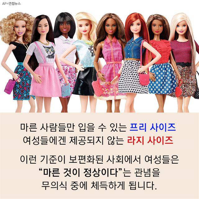 이런 기준이 보편화된 사회에서 여성들은 "마른 것이 정상이다"는 관념을 무의식 중에 체득하게 됩니다.