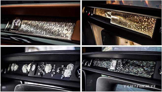 실내에는 비스포크 대시보드 '더 갤러리'를 적용했다. 하나의 강화유리로 제작된 더 갤러리는 오너의 DNA 구조를 금도금으로 3D 프린팅한 조각, 도자기 재질로 정교하게 가공된 장미 줄기나 보석이나 실크로 만든 디자인 아트를 적용할 수 있다.