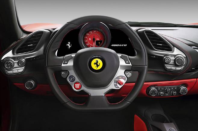 단 두 명만을 위해 마련 된 488 GTB에는 버킷 시트가 적용되어 운전자의 몸을 확실히 지탱 할 수 있도록 했다. 버킷 시트는 고전적인 디자인을 추구하여 80년 대 페라리 감성을 2015년에 만날 수 있도록 했다. 물론 보통 차량보다 편의성이 다소 떨어지는 것은 어쩔 수 없지만, 화려한 디자인과 함께 운전자의 몸을 확실히 잡아주는 기능까지 완벽히 이행한다.