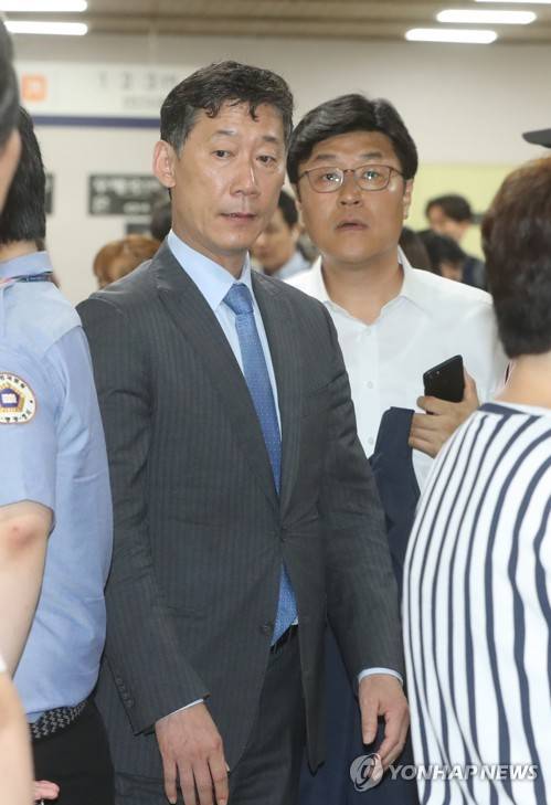 (서울=연합뉴스) 김주성 기자 = 조윤선 전 문화체육관광부 장관의 남편이자 변호인인 박성엽 변호사가 27일 오후 조 전 장관에 대한 선고공판이 열리는 서울 서초동 서울중앙지법 법정으로 들어가고 있다. 2017.7.27