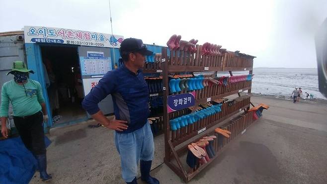 | ▲ 오이도 어촌계원이 장화 등의 갯벌체험 장비를 관리하고 있습니다. |