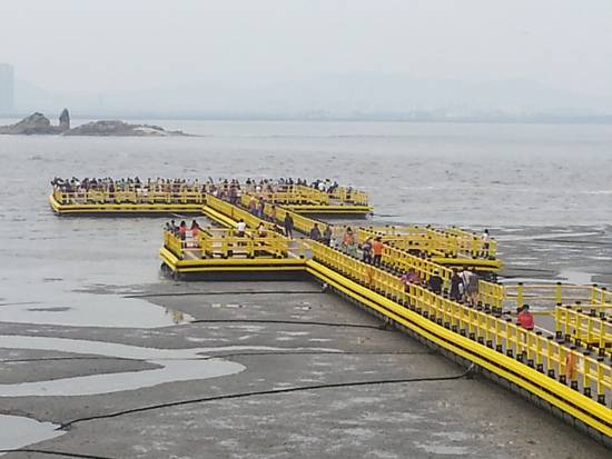 이 때문에 물이 빠진 간조 때에는 갯벌 위에서 먹이 활동을 하는 방게 등의 다양한 갯벌 생물을 관찰 할 수 있습니다. 만조 때에는 부잔교가 출렁 거리면서 마치 배에 타고 있는 것 같은 이색 체험을 경험할 수 있습니다.