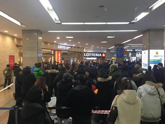 1번부터 300번까지 번호표 위에 앉거나 서 있는 사람들 주위엔 테이프로 ‘바리케이드’가 둘러졌다. 오전 10시30분이 다가왔다. 짧게는 6시간, 길게는 14시간 넘게 지하철 1호선 영등포역 내 롯데백화점 출입문 앞에 앉아 있던 사람들이 하나둘 일어났다. 몇몇 사람들은 휴대전화를 꺼내 들었다. 바닥에 붙은 번호표를 떼어내 기념사진을 찍기도 했다. 아무나 하지 못하는 큰일을 해냈다는 성취감이 묻어 있었다.