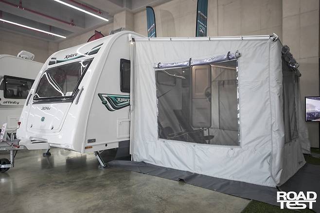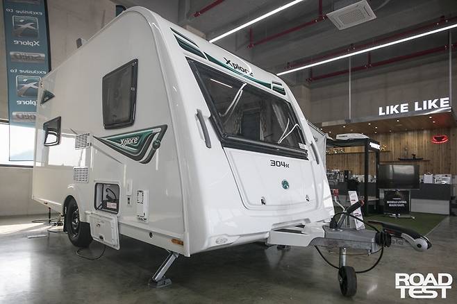 그 중에서 가장 인기 있는 익스플로어(Xplore) 304K를 꼼꼼히 살폈다.영국에서 빚은 모델로 시원한 개방감이 일품이다.이름 뒤에 붙은 숫자는 카라반의 크기를 나타내는 단서.가령, 300급은 차체 길이가3~4m. 500급은5~6m크기를 뽐낸다.대부분의300급 카라반이 트레일러 면허가 필요 없는 인기 모델이다. 4인 가족이 널찍하게 쓸 수 있다.