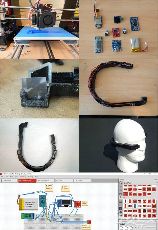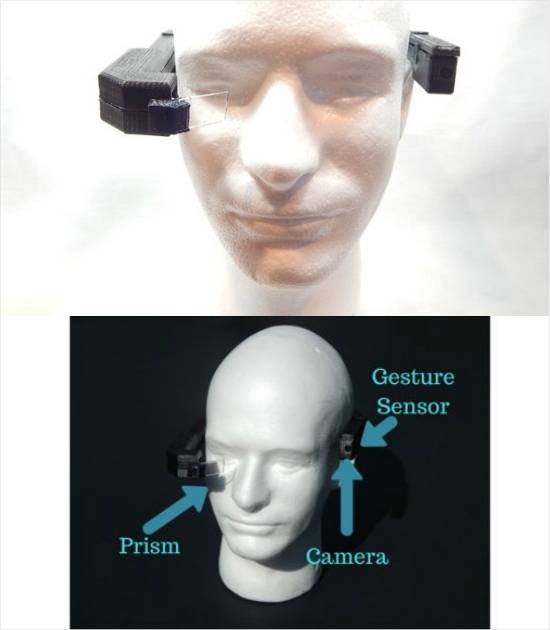 온갖 신기한 아이디어가 모인 인스트럭터블닷컴(www.instructables.com)에서 활동하고 있는 15세의 다니엘 퀸타나는 동생과 산악자전거를 즐기다 아버지와의 약속시간을 확인하기 위해 자전거를 멈추고 시계를 보는 일이 불편해 스마트폰과 연동되는 AR 헤드셋을 만들었다고 합니다.
