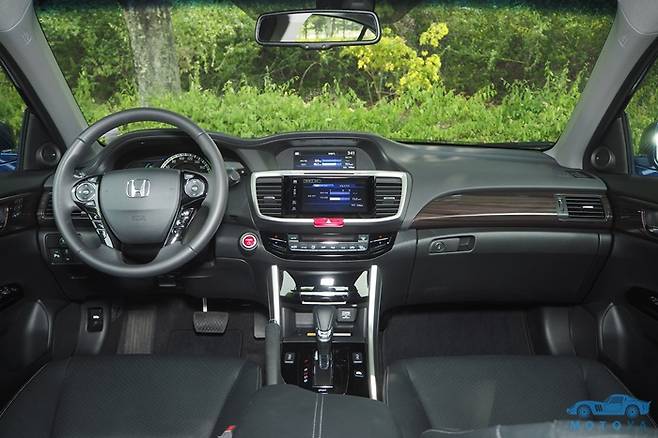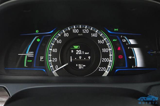 풀-하이브리드 시스템을 채용하고 있는 혼다 어코드의 시동 버튼 자리에는 빨간 색상의 ‘전원(Power)’버튼이 존재한다. 이것을 눌러 전원을 올리면 계기반 세레머니와 ‘Ready’ 표시와 함께, 주행이 가능해진다. 물론, 기온이 낮거나 혹은 장시간 운행하지 않아서 엔진에 예열이 필요한 경우, 공조장치 등, 전력을 크게 소모하는 전장품을 사용하는 경우에는 전원 버튼을 누름과 동시에 엔진에 시동이 걸리기도 한다.