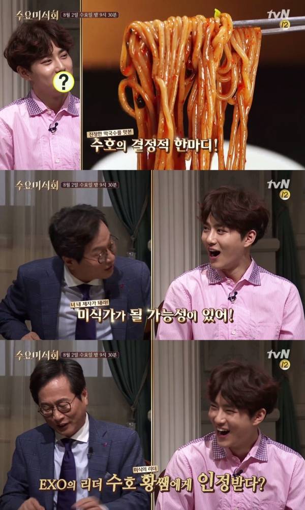 그룹 엑소의 멤버 수호가 맛 칼럼니스트 황교익에게 미식가로 인정받았다.