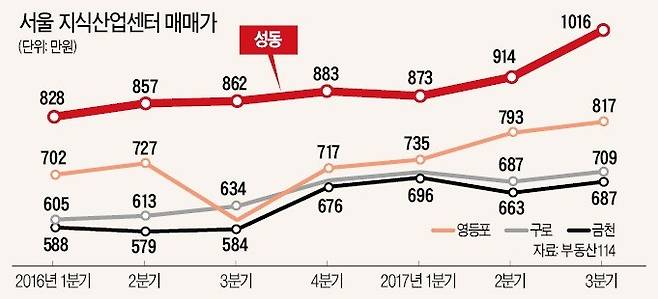 성수동 지식산업센터 매매가, 1000만원 넘었다