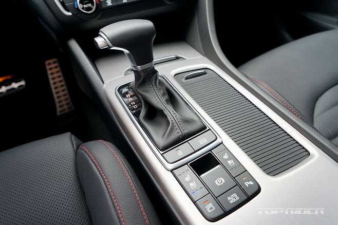 전자식 서스펜션은 주행모드에 따라 감쇄력이 변화되는 타입이다. 컴포트 모드에서도 K5 기본형 대비 다소 단단한 설정을 보이는데, 스포츠 모드에서는 단단함을 더한다. 스포츠 모델에 대한 경험이 없는 운전자라면 부담스러울 수 있다.
