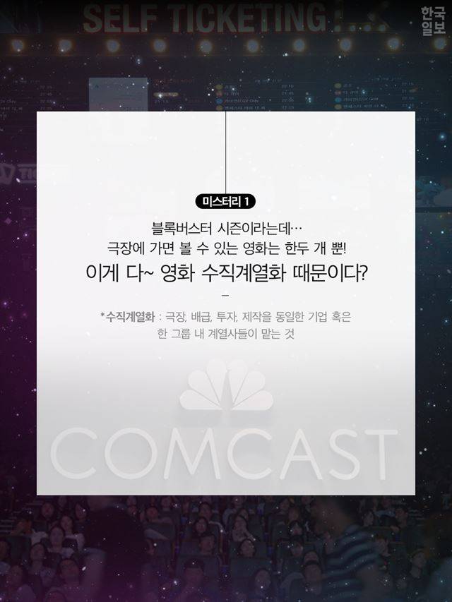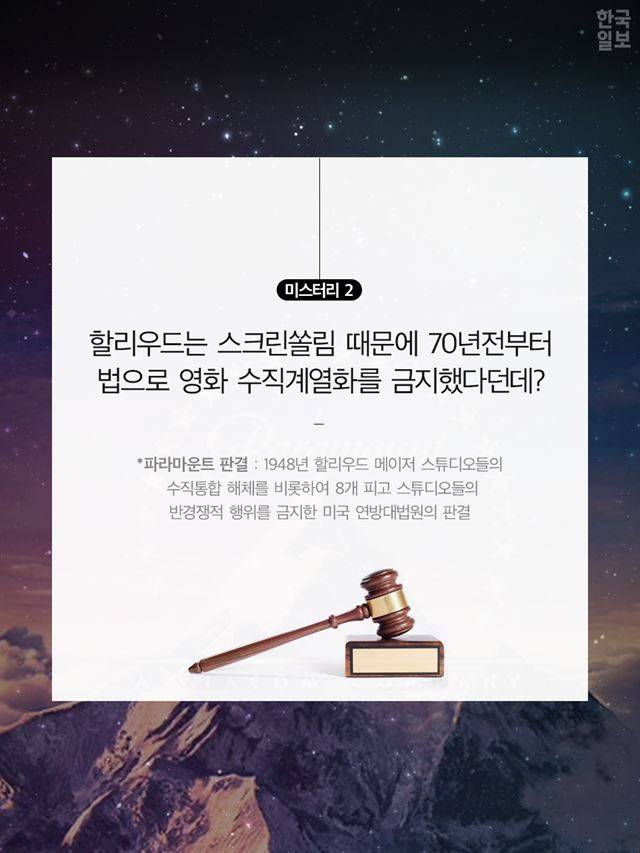 할리우드는 스크린쏠림 때문에 70년전부터 법으로 영화 수직계열화를 금지했다던데?