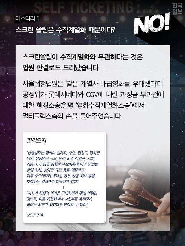 스크린쏠림이 수직계열화와 무관하다는 것은 법원 판결로도 드러났습니다.