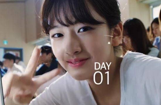 안유진은 광고에서 '스무살의 스마트한 한 달 렌즈'라는 카피처럼 풋풋한 대학 신입생을 연기했다.