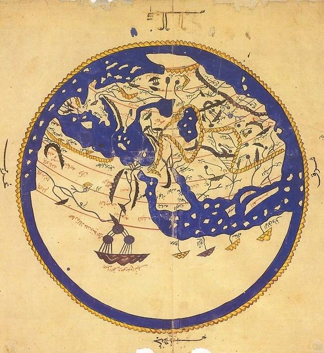 | ▲ 알 이드리시 지도 알 이드리시 세계지도(12세기) |