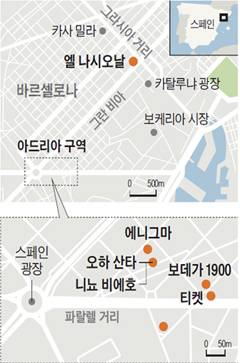 바르셀로나 대표 미식 지역 유명 레스토랑