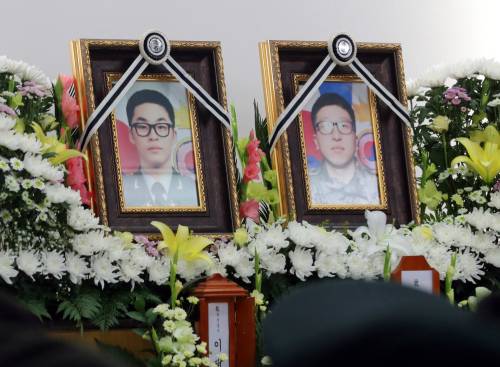 K-9 자주포 사격훈련 중 폭발 사고로 숨진 고(故) 이태균(26) 상사와 정수연(22) 상병의 영결식이 21일 오전 7시 30분 경기 성남 국군수도병원에서 열렸다. 육군은 이들의 마지막 가는 길을 기리고자 순직으로 의결하고 故 이 중사는 상사로 故 정 일병은 상병으로 추서했다.